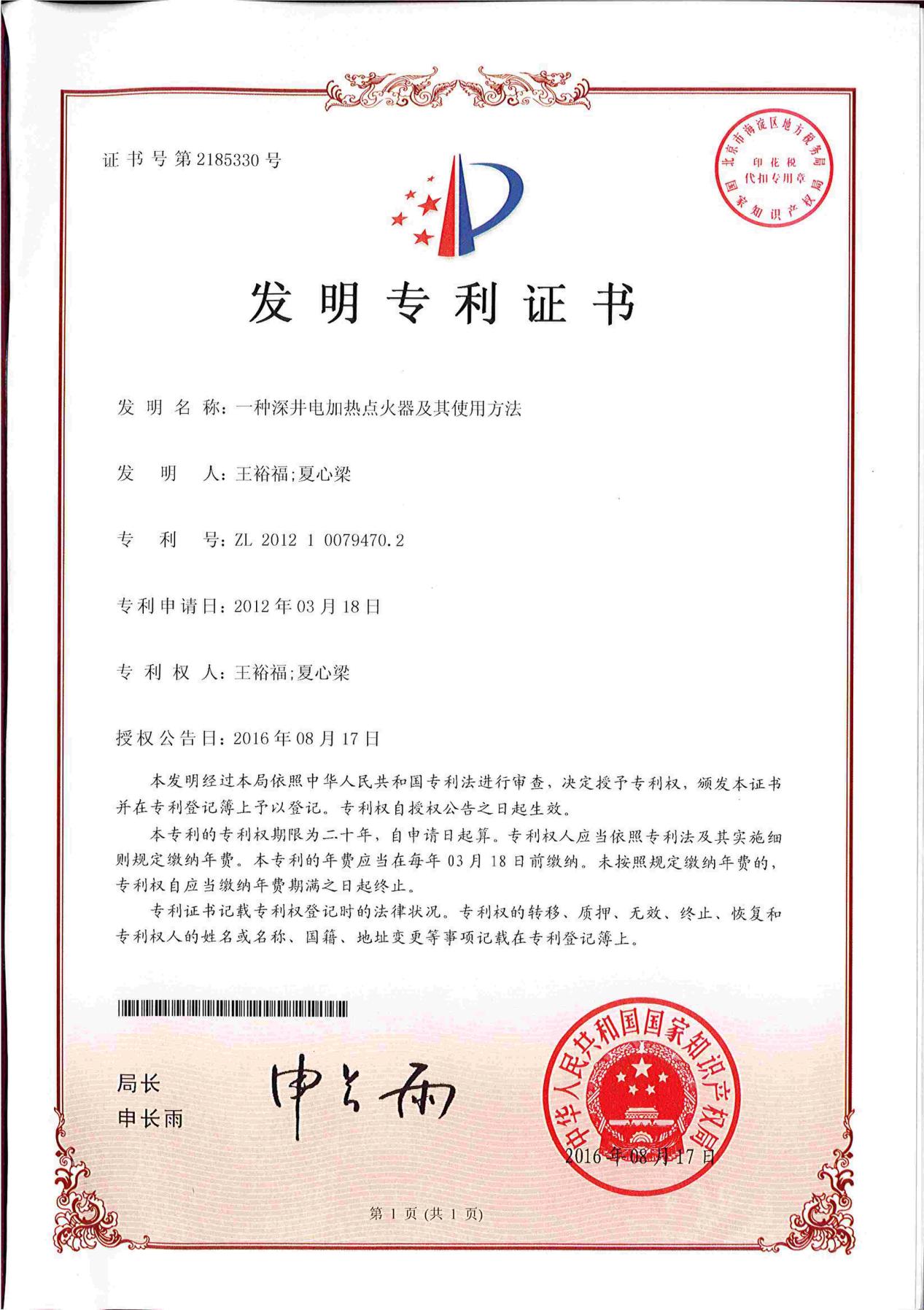 一种深井电加热点火器及其使用方法